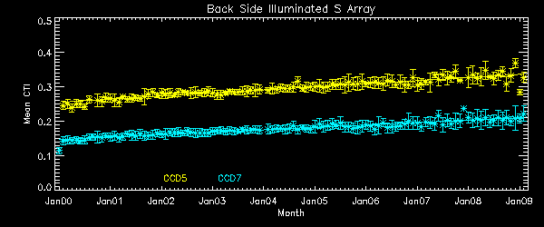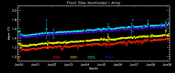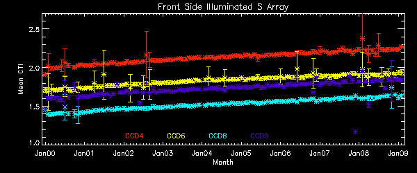 CTI's are computed for Mn K alpha, and defined as slope/intercept x10^4 of row # vs ADU.