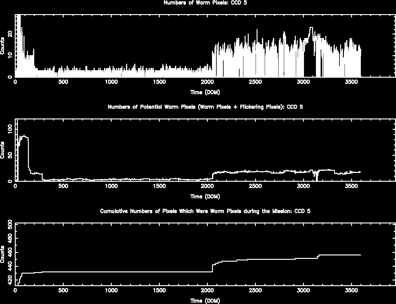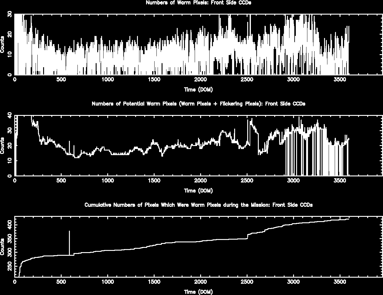 The plots below were generated with a new warm pixel finding script. Please see Acis Bad Pixel Page for details.