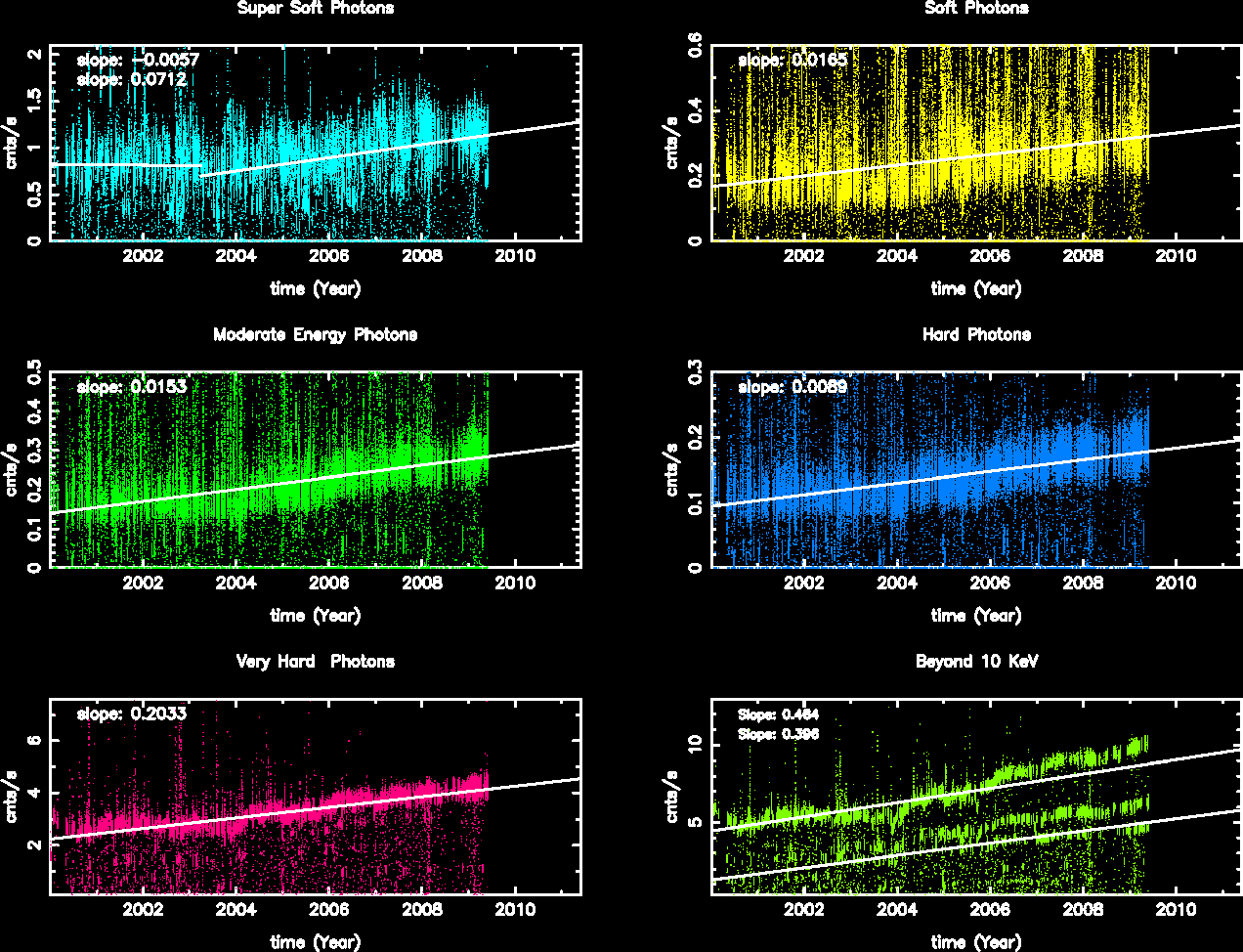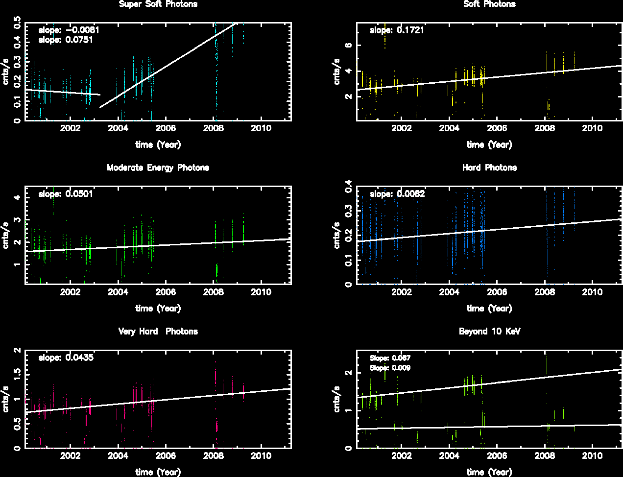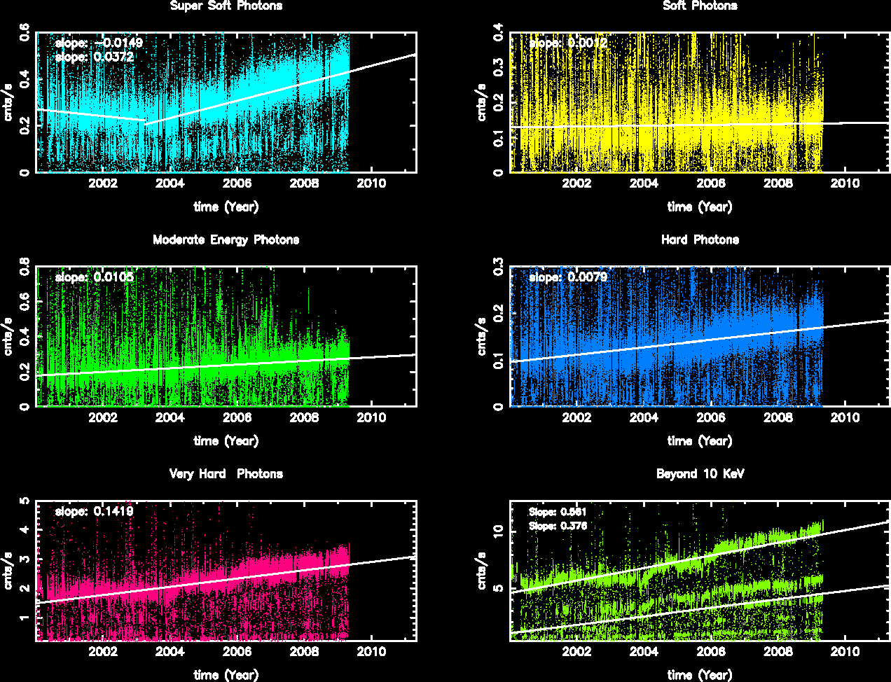 Statistics: # IMAGE NPIX MEAN RMS MIN MAX ACIS_may09 6004901 15.077 19.168 0.0 979.0 I2 node 0 262654 11.605942 4.345428 0.0 81.0 I2 node 1 262654 12.549475 5.151602 0.0 429.0 I2 node 2 262654 13.947079 5.968040 0.0 88.0 I2 node 3 262654 13.817270 5.793856 0.0 75.0 I3 node 0 262654 15.655591 6.215676 0.0 79.0 I3 node 1 262654 17.581364 15.200965 0.0 396.0 I3 node 2 262654 14.142985 5.158388 0.0 92.0 I3 node 3 262654 13.209335 4.808993 0.0 257.0 I2 node 0 262654 18.804144 5.658368 0.0 84.0 I2 node 1 262654 24.000720 9.929292 2.0 367.0 I2 node 2 262654 24.289323 9.159598 3.0 191.0 I2 node 3 262654 21.727572 7.927156 2.0 979.0 I3 node 0 262654 25.972997 15.856090 2.0 186.0 I3 node 1 262654 30.251381 10.906679 0.0 133.0 I3 node 2 262654 32.291648 13.601302 4.0 88.0 I3 node 3 262654 26.416842 10.422524 3.0 146.0