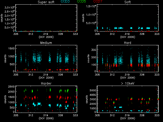 Statistics: # IMAGE NPIX MEAN RMS MIN MAX ACIS_nov09 6004901 12.07 20.66 0.0 9074 I2 node 0 262654 12.862488 5.959898 0.0 85.0 I2 node 1 262654 12.712817 15.457648 0.0 7410.0 I2 node 2 262654 12.261024 4.650003 0.0 85.0 I2 node 3 262654 12.121113 4.978214 0.0 472.0 I3 node 0 262654 13.465173 5.779261 0.0 56.0 I3 node 1 262654 13.140781 11.653978 0.0 268.0 I3 node 2 262654 11.615707 4.433487 0.0 81.0 I3 node 3 262654 12.004364 26.312263 0.0 9074.0 S2 node 0 262654 11.403451 20.758624 0.0 6203.0 S2 node 1 262654 12.029587 4.727526 0.0 84.0 S2 node 2 262654 13.181319 5.009930 0.0 116.0 S2 node 3 262654 12.836345 5.815853 0.0 756.0 S3 node 0 262654 17.311543 13.180438 0.0 278.0 S3 node 1 262654 39.102046 31.576410 0.0 261.0 S3 node 2 262654 37.348767 34.654438 1.0 239.0 S3 node 3 262654 14.073257 4.233212 1.0 56.0