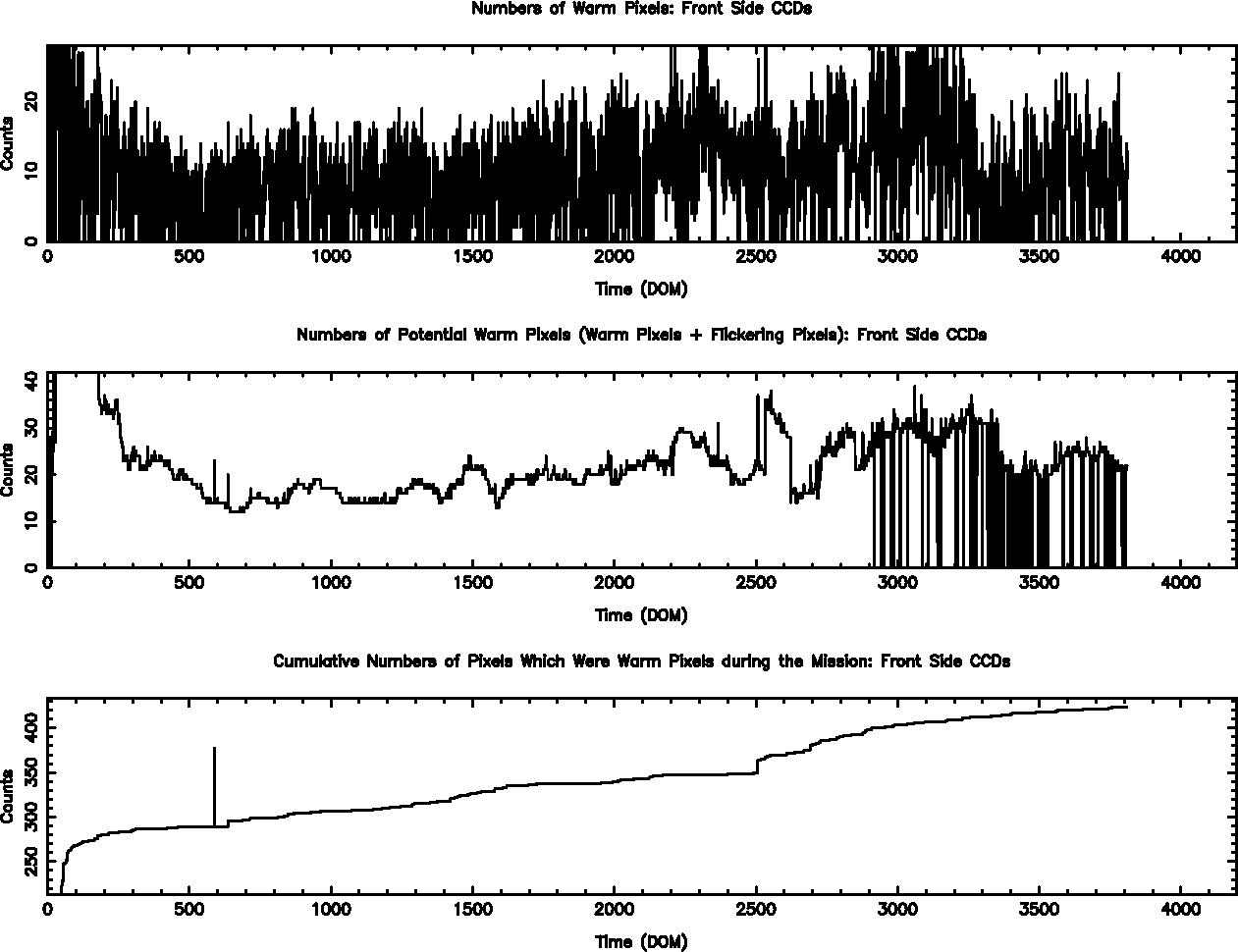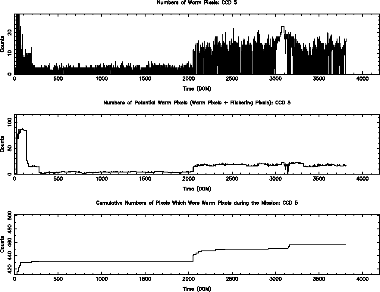 The plots below were generated with a new warm pixel finding script. Please see Acis Bad Pixel Page for details.