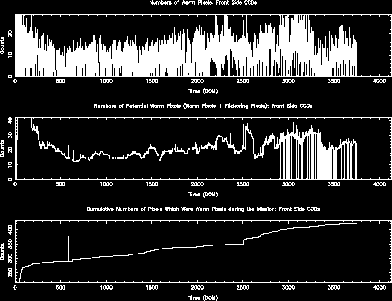 The plots below were generated with a new warm pixel finding script. Please see Acis Bad Pixel Page for details.