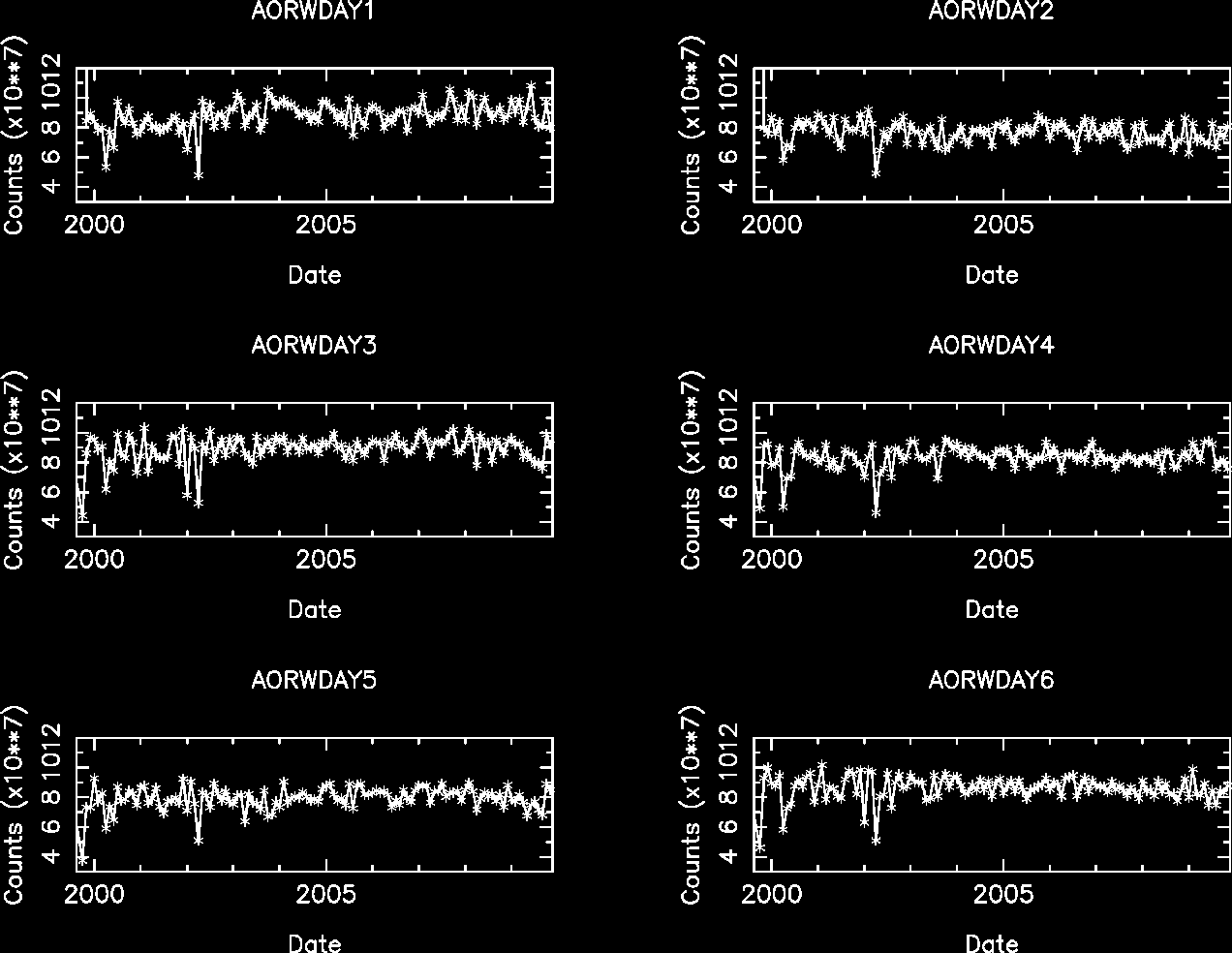 Statistics: # IMAGE NPIX MEAN RMS MIN MAX ACIS_oct09 6004901 10.652 14.960 0.0 758.0 I2 node 0 262654 10.938129 4.128998 0.0 65.0 I2 node 1 262654 11.772860 4.774640 0.0 399.0 I2 node 2 262654 11.502987 4.226613 0.0 78.0 I2 node 3 262654 11.800723 4.561637 0.0 75.0 I3 node 0 262654 11.248907 4.243506 0.0 59.0 I3 node 1 262654 12.088493 11.760642 0.0 449.0 I3 node 2 262654 10.882863 4.100708 0.0 69.0 I3 node 3 262654 10.817703 4.141590 0.0 207.0 I2 node 0 262654 14.217923 5.055142 0.0 678.0 I2 node 1 262654 14.765784 5.590532 0.0 110.0 I2 node 2 262654 15.800919 5.458552 0.0 144.0 I2 node 3 262654 16.482513 5.400469 0.0 671.0 I3 node 0 262654 19.097124 9.733109 2.0 181.0 I3 node 1 262654 18.340243 6.255880 0.0 100.0 I3 node 2 262654 17.291536 4.464105 2.0 154.0 I3 node 3 262654 15.500969 4.095921 1.0 88.0