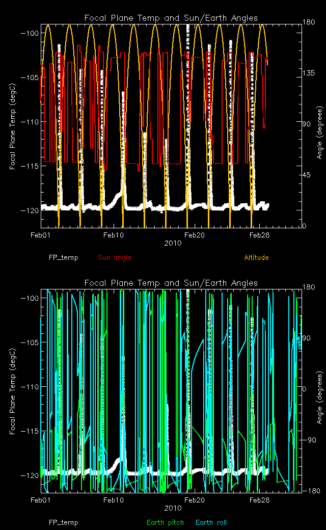 Focal Plane Temperature and Sun Angle, Earth Engle, and Altitude