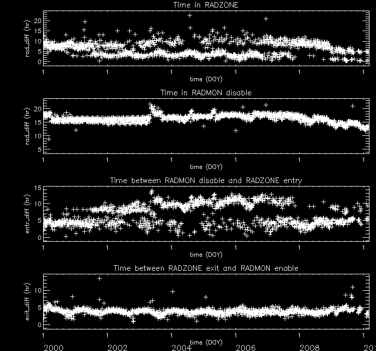 Plotted below are radiation zone timing plots based on the following definitions of radiation zone: