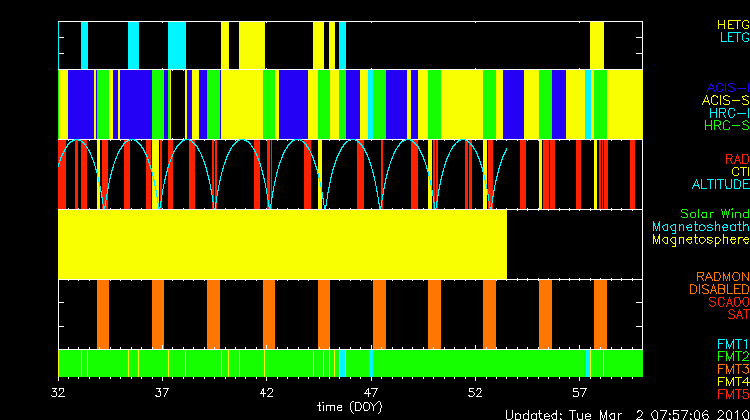 - RADMON - Radmon is disabled for radiation zone (as commanded based on OFLS model, for comparison with actual radiation levels).