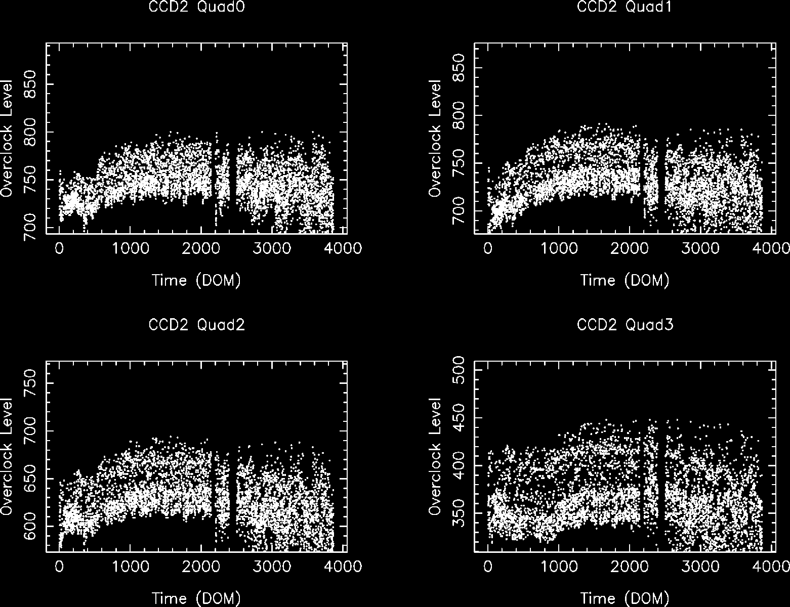 - Fits files were divided into 4 quads, then an average of bias level for each quad is computed. No corrections for dead spots, columns etc were included.