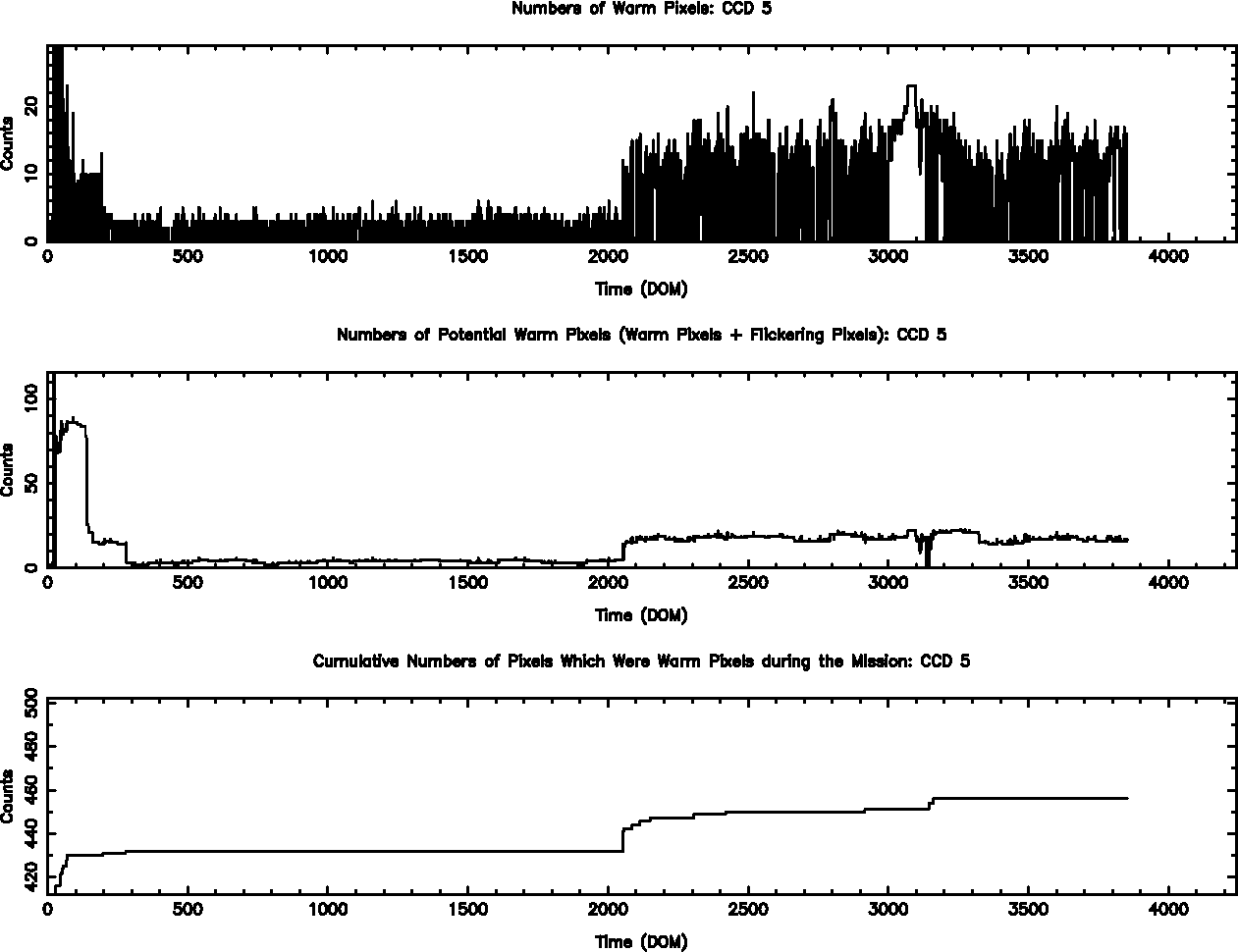 The plots below were generated with a new warm pixel finding script. Please see Acis Bad Pixel Page for details.