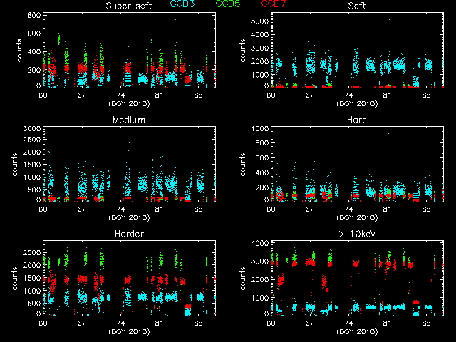 Statistics: # IMAGE NPIX MEAN RMS MIN MAX ACIS_mar10 6004901 10.644 18.781 0.0 13413 I2 node 0 262654 11.623119 4.291749 0.0 76.0 I2 node 1 262654 13.039330 6.479634 0.0 336.0 I2 node 2 262654 12.091198 4.398658 0.0 91.0 I2 node 3 262654 11.798204 4.589748 0.0 75.0 I3 node 0 262654 11.495319 4.229780 0.0 59.0 I3 node 1 262654 12.317799 12.205491 0.0 304.0 I3 node 2 262654 11.526925 4.101680 0.0 158.0 I3 node 3 262654 13.136490 28.059431 0.0 9247.0 S2 node 0 262654 13.913507 12.211772 0.0 5719.0 S2 node 1 262654 15.473249 5.808744 1.0 115.0 S2 node 2 262654 16.730702 19.637584 1.0 9102.0 S2 node 3 262654 16.091532 8.556732 1.0 929.0 S3 node 0 262654 15.203615 9.302606 0.0 165.0 S3 node 1 262654 17.380925 10.783266 0.0 2615.0 S3 node 2 262654 16.502095 5.666400 1.0 66.0 S3 node 3 262654 14.611364 5.216289 1.0 63.0