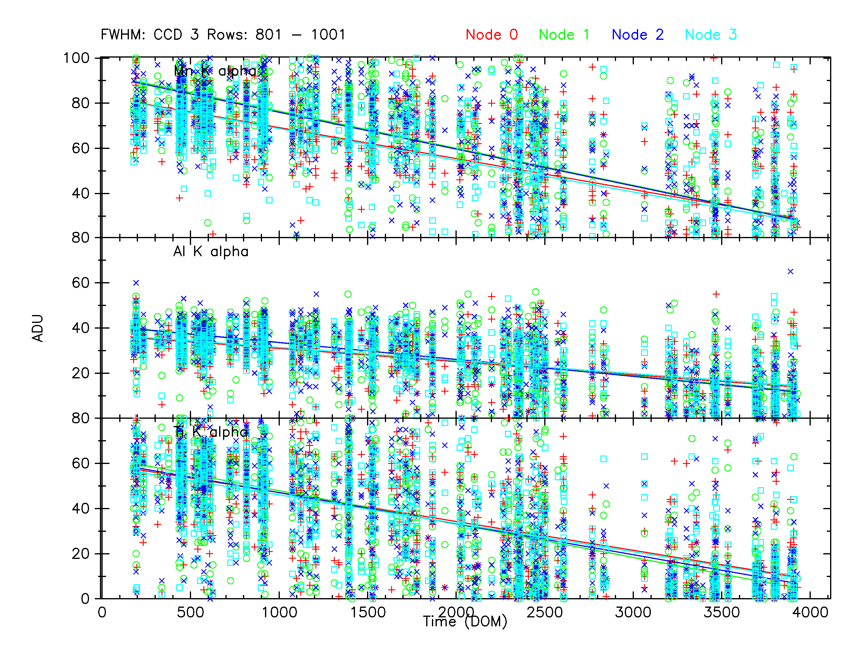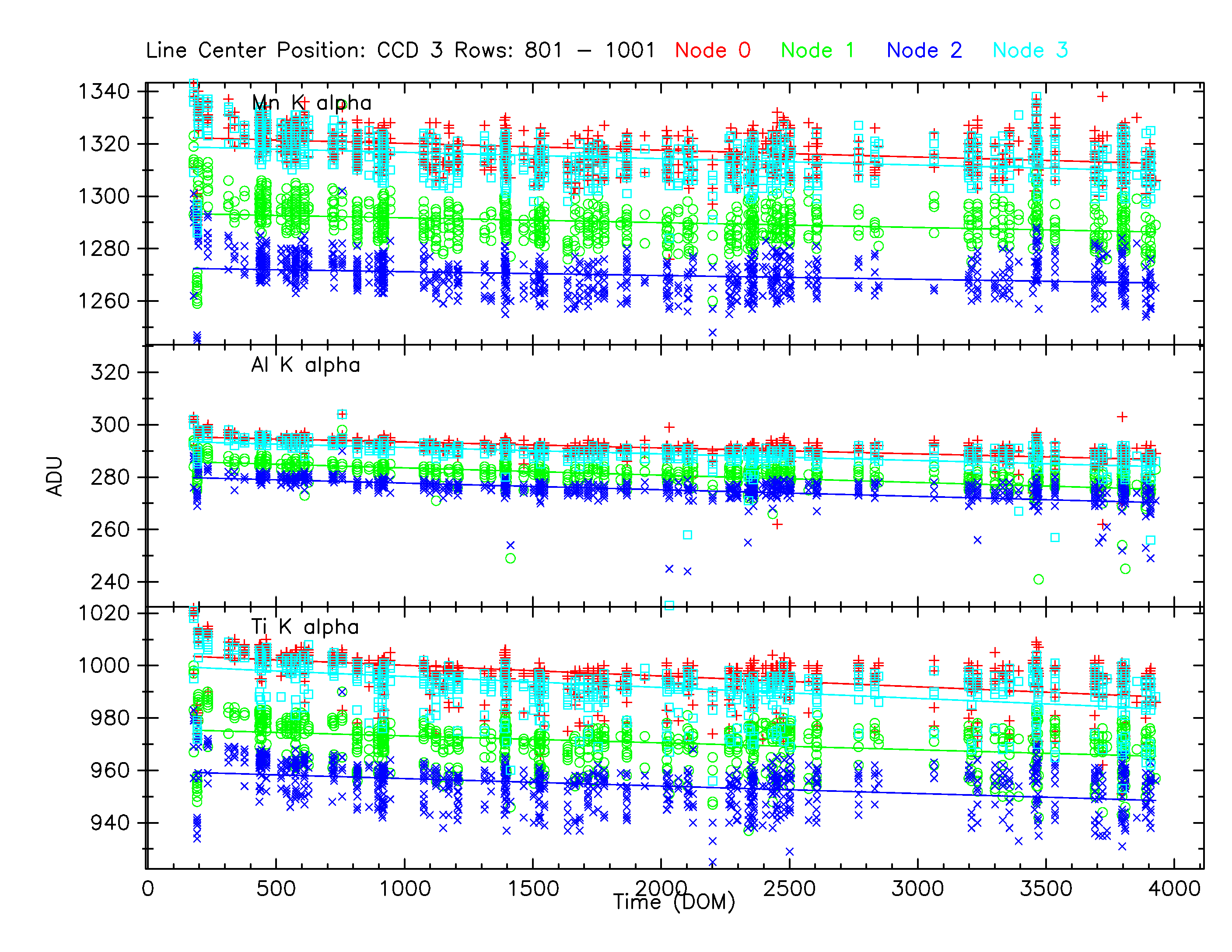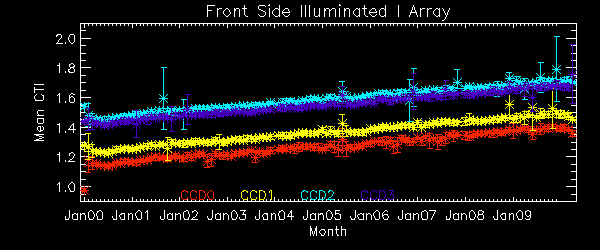 CTI's are computed for Mn K alpha, and defined as slope/intercept x10^4 of row # vs ADU.