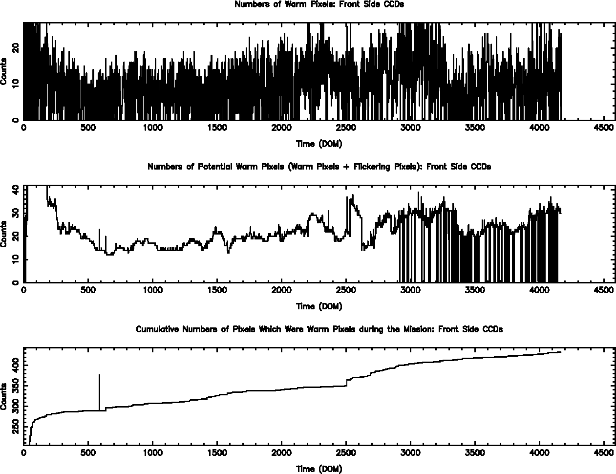 The plots below were generated with a new warm pixel finding script. Please see Acis Bad Pixel Page for details.