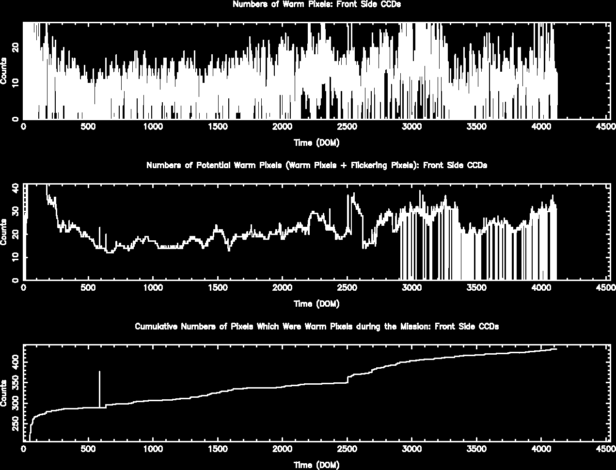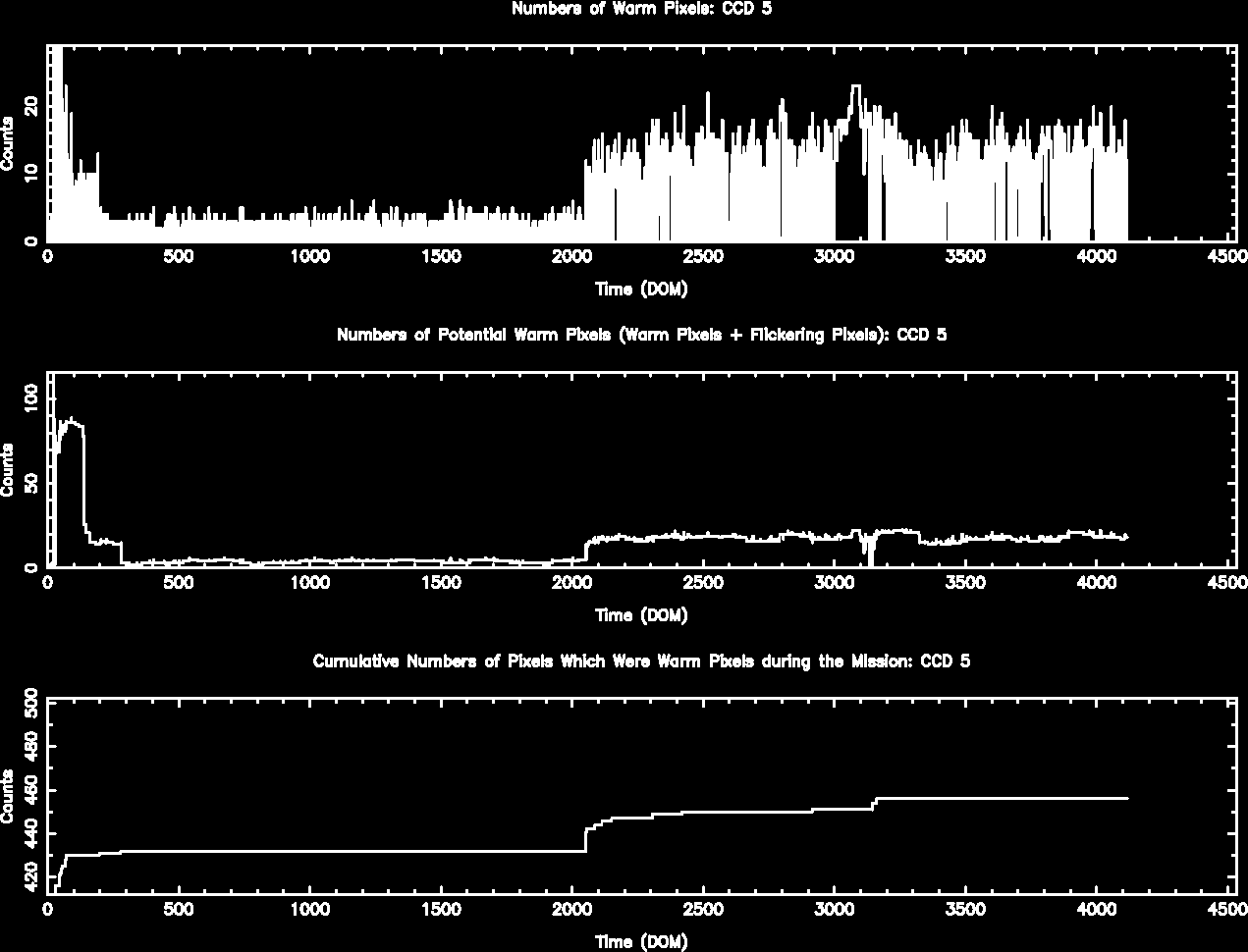 The plots below were generated with a new warm pixel finding script. Please see Acis Bad Pixel Page for details.