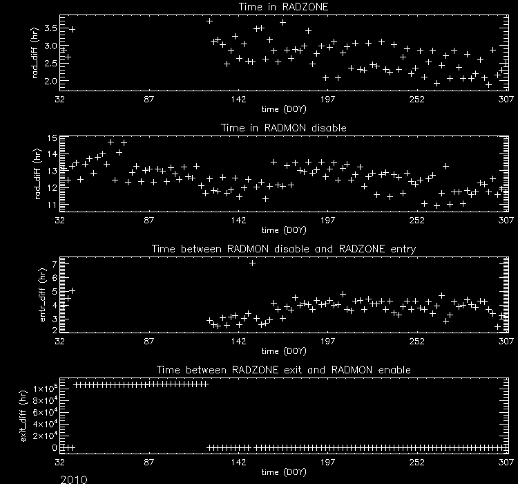 Plotted below are radiation zone timing plots based on the following definitions of radiation zone: