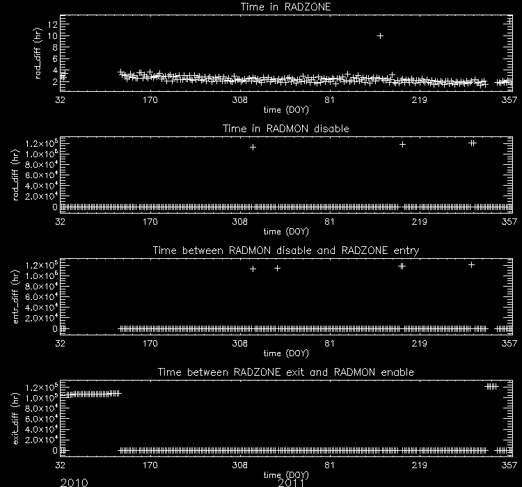 Plotted below are radiation zone timing plots based on the following definitions of radiation zone: