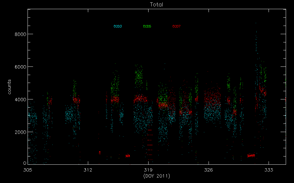 Statistics: # IMAGE NPIX MEAN RMS MIN MAX ACIS_nov11 6004901 9.058 17.634 0.0 460 I2 node 0 262654 7.546707 3.380483 0.0 73.0 I2 node 1 262654 7.987824 4.263040 0.0 343.0 I2 node 2 262654 7.790173 3.319859 0.0 74.0 I2 node 3 262654 7.797150 3.697619 0.0 52.0 I3 node 0 262654 8.287295 3.508768 0.0 46.0 I3 node 1 262654 8.754387 8.378423 0.0 200.0 I3 node 2 262654 7.976012 3.338361 0.0 60.0 I3 node 3 262654 8.033993 3.463662 0.0 322.0 S2 node 0 262654 7.599410 3.285971 0.0 332.0 S2 node 1 262654 8.336014 3.723048 0.0 61.0 S2 node 2 262654 11.233012 6.141524 0.0 86.0 S2 node 3 262654 14.245922 9.140655 0.0 400.0 S3 node 0 262654 37.900483 60.664797 0.0 455.0 S3 node 1 262654 22.475265 13.998799 0.0 132.0 S3 node 2 262654 14.816701 4.850877 1.0 43.0 S3 node 3 262654 12.384925 3.847230 0.0 58.0