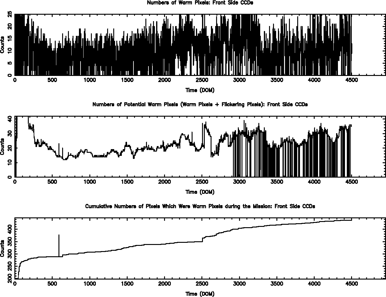The plots below were generated with a new warm pixel finding script. Please see Acis Bad Pixel Page for details.