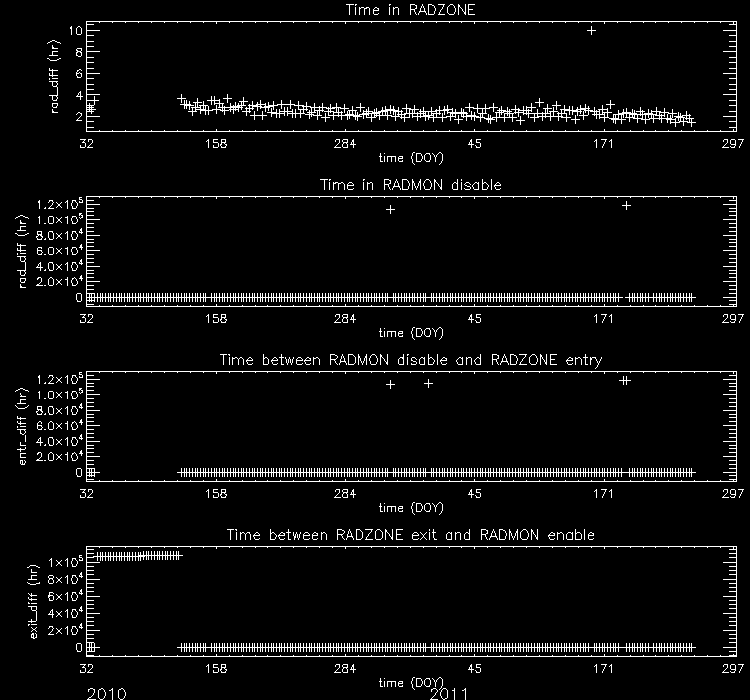 - RADMON - Radmon is disabled for radiation zone (as commanded based on OFLS model, for comparison with actual radiation levels).