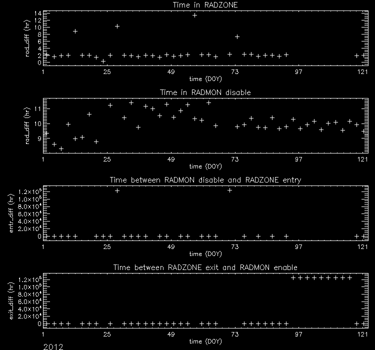 Plotted below are radiation zone timing plots based on the following definitions of radiation zone: