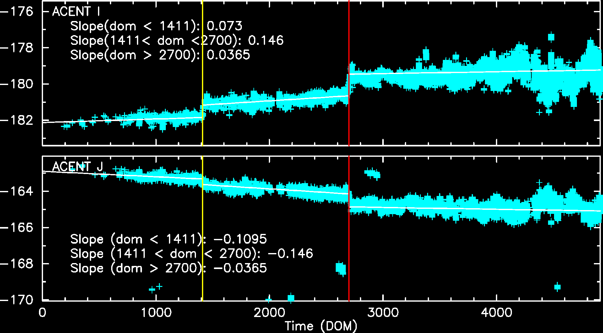 Fid light positions on ACA drift with time. The drift trends of Fid light 2 with ACIS-I and ACIS-S configurations are shown below.