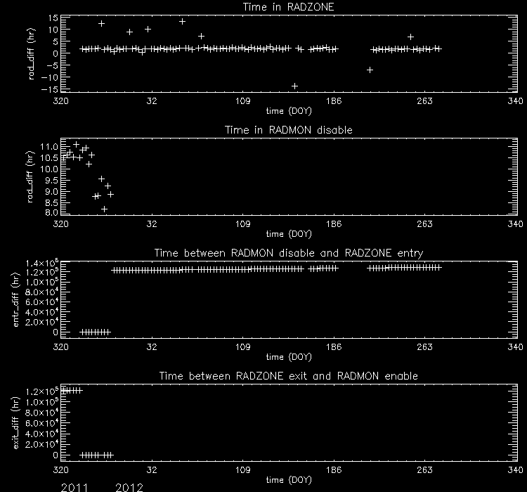 Plotted below are radiation zone timing plots based on the following definitions of radiation zone: