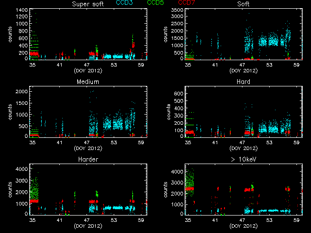 Statistics: # IMAGE NPIX MEAN RMS MIN MAX ACIS_jan12 6004901 7.105 9.979 0.0 480 I2 node 0 262654 6.156525 2.830235 0.0 52.0 I2 node 1 262654 6.439131 3.260210 0.0 172.0 I2 node 2 262654 6.268764 2.823398 0.0 46.0 I2 node 3 262654 6.233135 3.011559 0.0 35.0 I3 node 0 262654 6.131596 2.810484 0.0 29.0 I3 node 1 262654 6.726669 5.952808 0.0 400.0 I3 node 2 262654 6.139745 2.797797 0.0 45.0 I3 node 3 262654 6.099098 2.755044 0.0 99.0 S2 node 0 262654 9.466923 3.907459 0.0 403.0 S2 node 1 262654 9.809096 4.393136 0.0 85.0 S2 node 2 262654 10.374341 4.650428 0.0 117.0 S2 node 3 262654 10.180826 4.470108 0.0 446.0 S3 node 0 262654 17.222970 17.777268 0.0 155.0 S3 node 1 262654 15.409535 11.243775 0.0 132.0 S3 node 2 262654 12.774862 4.253203 0.0 45.0 S3 node 3 262654 12.035053 3.860302 1.0 41.0