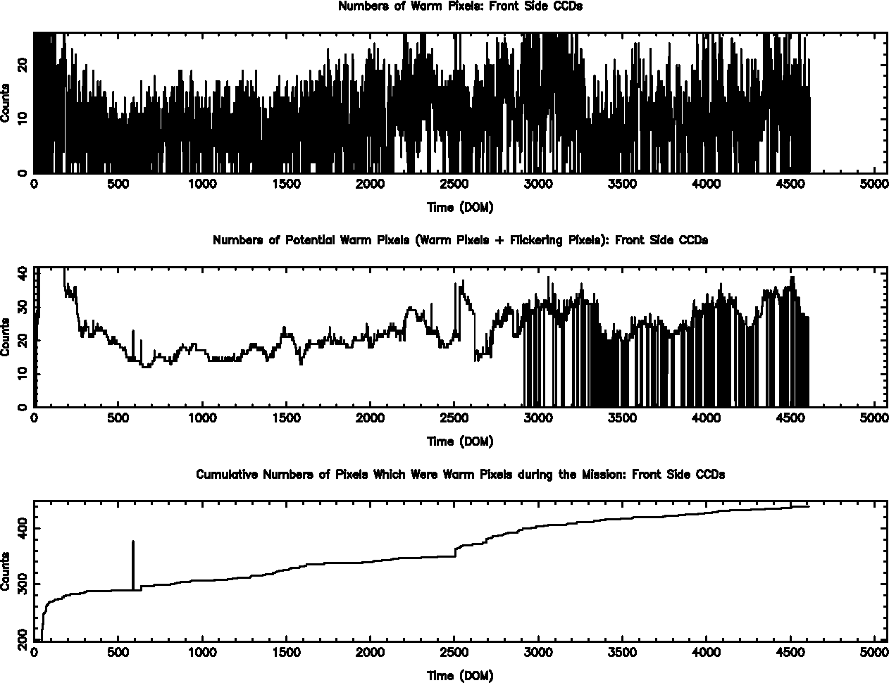 The plots below were generated with a new warm pixel finding script. Please see Acis Bad Pixel Page for details.