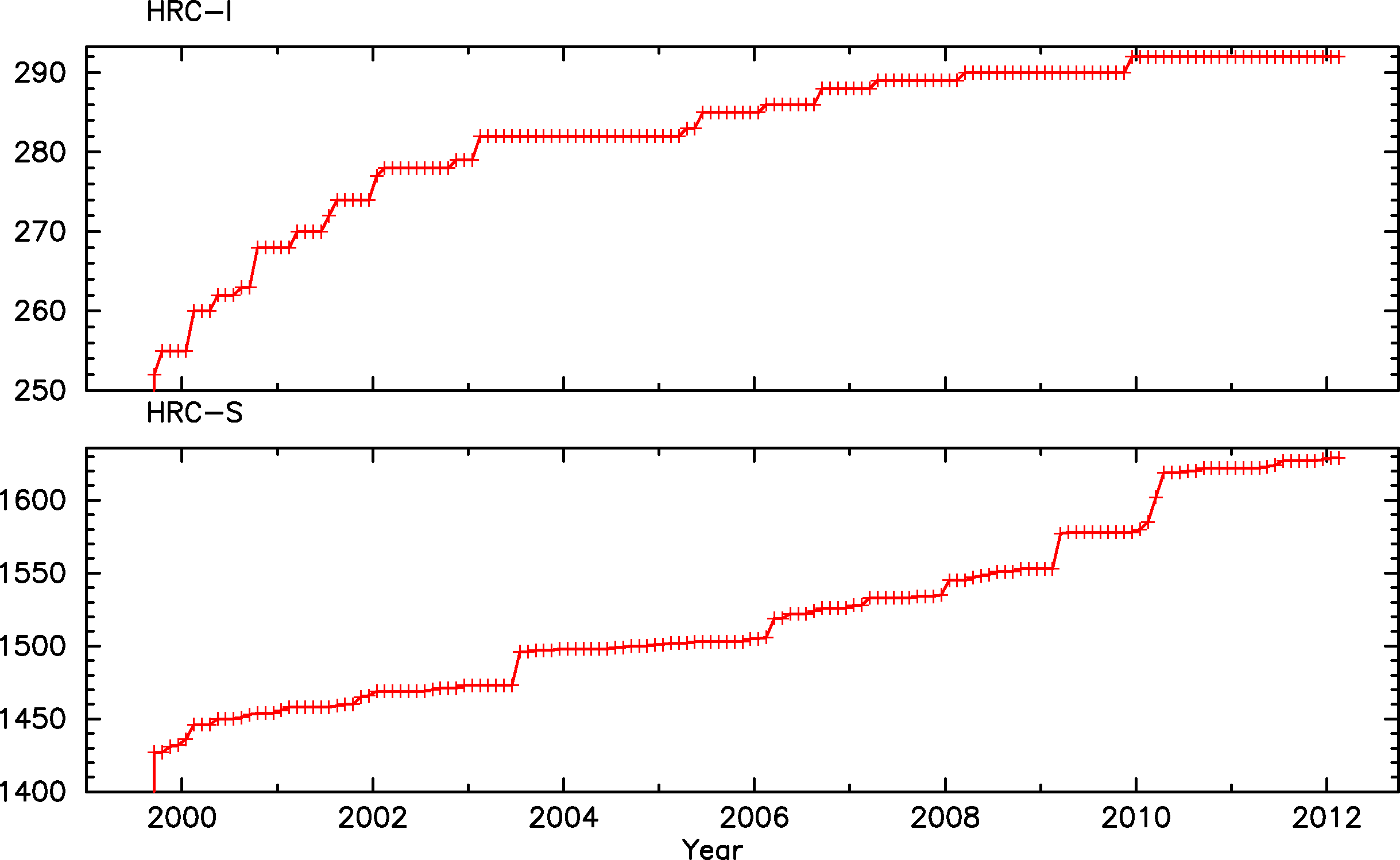Statistics: IMAGE NPIX MEAN RMS MIN MAX ACIS_total 6004901 1579.17 2114.57 0.0 95047 I2 node 0 262654 1306.346520 252.934040 0.0 6644.0 I2 node 1 262654 1379.003360 340.289915 0.0 27941.0 I2 node 2 262654 1412.852432 305.722644 0.0 8916.0 I2 node 3 262654 1408.254263 359.829614 0.0 27692.0 I3 node 0 262654 1475.586817 359.695111 0.0 6525.0 I3 node 1 262654 1549.006340 1171.748728 0.0 30132.0 I3 node 2 262654 1347.254987 245.186401 0.0 6448.0 I3 node 3 262654 1333.062298 260.880264 0.0 23752.0 S2 node 0 262654 1887.729714 263.186701 981.0 20167.0 S2 node 1 262654 2007.915784 433.504314 1014.0 11064.0 S2 node 2 262654 2228.930185 421.904660 1321.0 16072.0 S2 node 3 262654 2159.581193 314.008434 1260.0 34243.0 S3 node 0 262654 3289.066728 1649.202701 1366.0 13069.0 S3 node 1 262654 4467.348354 1958.965175 0.0 13570.0 S3 node 2 262654 3387.604469 908.785464 1289.0 8464.0 S3 node 3 262654 2612.827412 418.196332 1460.0 9480.0