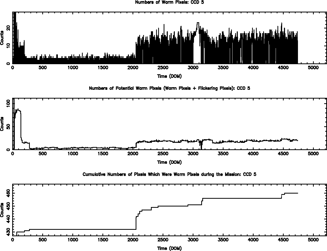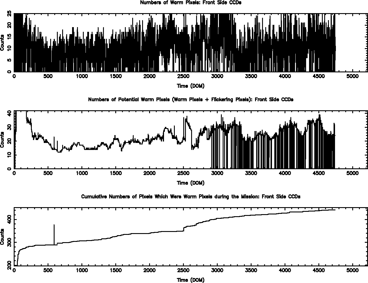 The plots below were generated with a new warm pixel finding script. Please see Acis Bad Pixel Page for details.