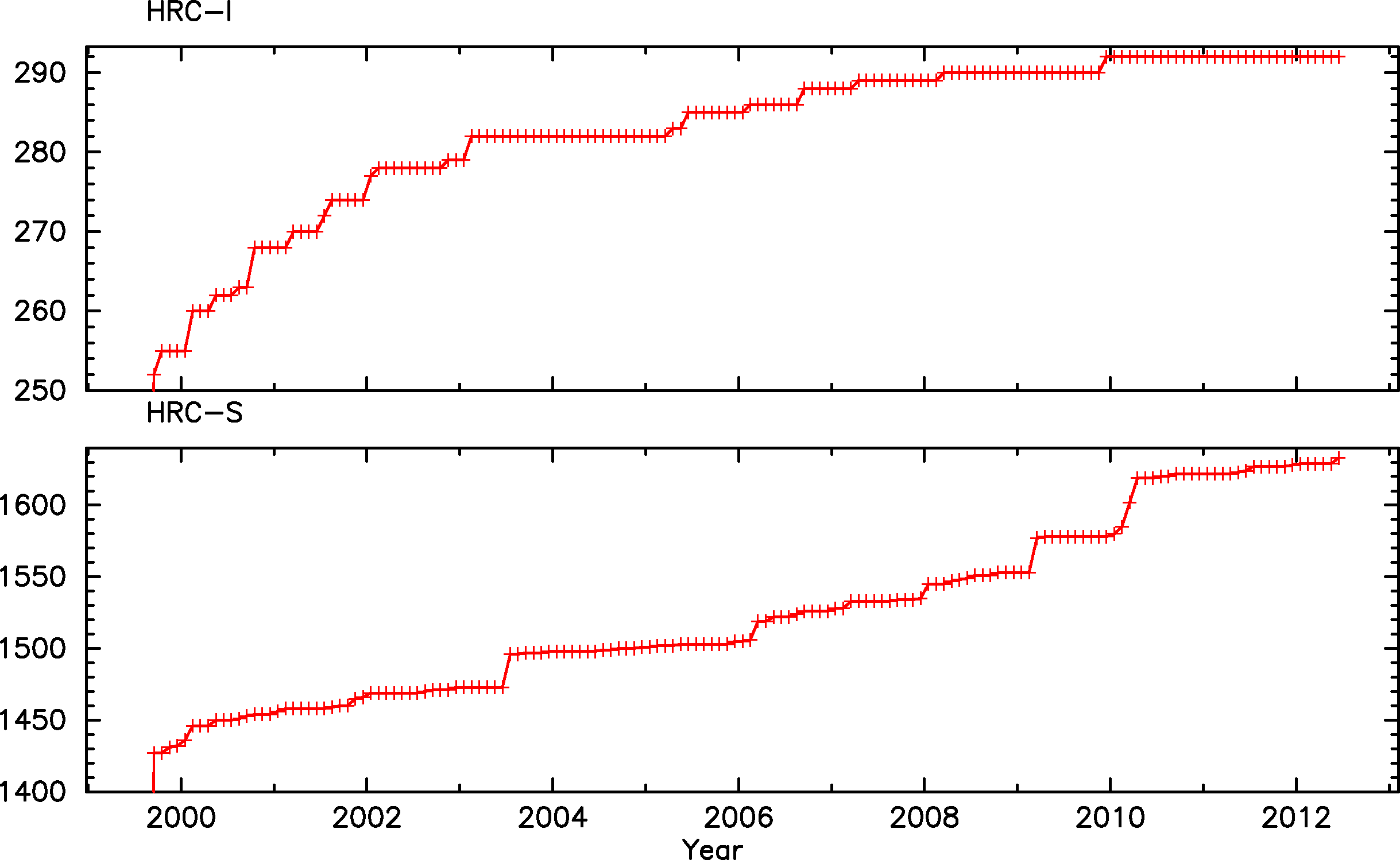 Statistics: # IMAGE NPIX MEAN RMS MIN MAX ACIS_jun12 6004901 7.055 9.221 0.0 448 I2 node 0 262654 7.551685 5.843318 0.0 106.0 I2 node 1 262654 7.382344 3.579157 0.0 253.0 I2 node 2 262654 7.139988 3.145438 0.0 49.0 I2 node 3 262654 7.032219 3.335477 0.0 55.0 I3 node 0 262654 8.353814 3.539747 0.0 44.0 I3 node 1 262654 9.148808 8.211923 0.0 204.0 I3 node 2 262654 8.512602 3.543503 0.0 48.0 I3 node 3 262654 8.149555 3.406113 0.0 144.0 S2 node 0 262654 8.548143 3.727566 0.0 387.0 S2 node 1 262654 8.677167 3.937898 0.0 64.0 S2 node 2 262654 9.265077 4.046080 0.0 348.0 S2 node 3 262654 9.502055 3.452652 0.0 421.0 S3 node 0 262654 11.698143 5.124853 0.0 87.0 S3 node 1 262654 12.783022 4.434870 0.0 68.0 S3 node 2 262654 12.346243 3.693091 0.0 42.0 S3 node 3 262654 10.756268 3.422518 0.0 67.0