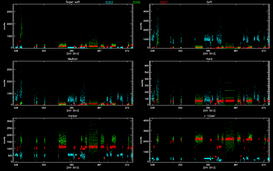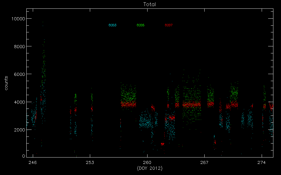 Note the half-life decline of the CTI source is clearly evidenced in the steady janline of EVTSENT.