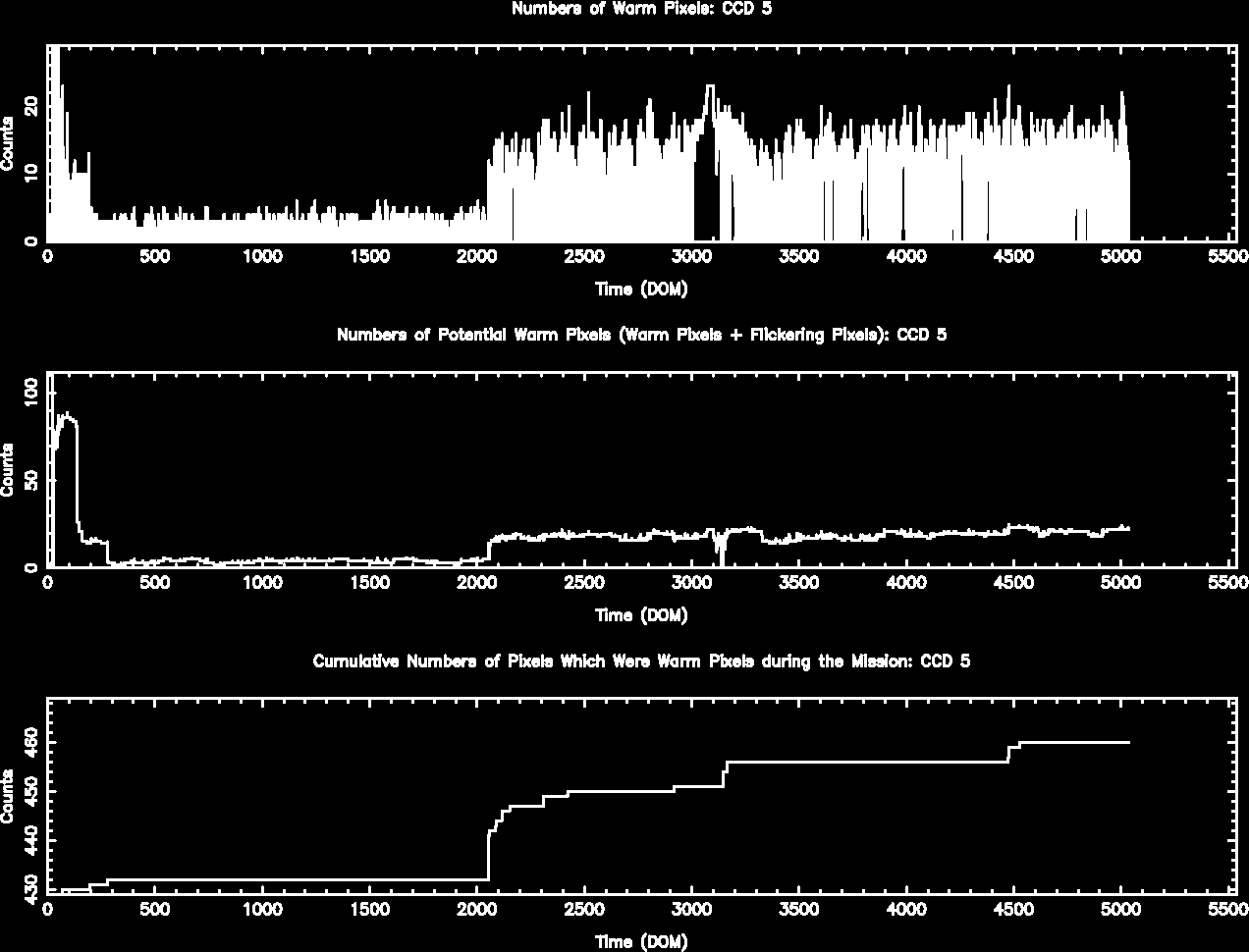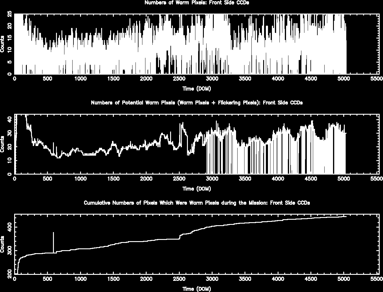 The plots below were generated with a new warm pixel finding script. Please see Acis Bad Pixel Page for details.