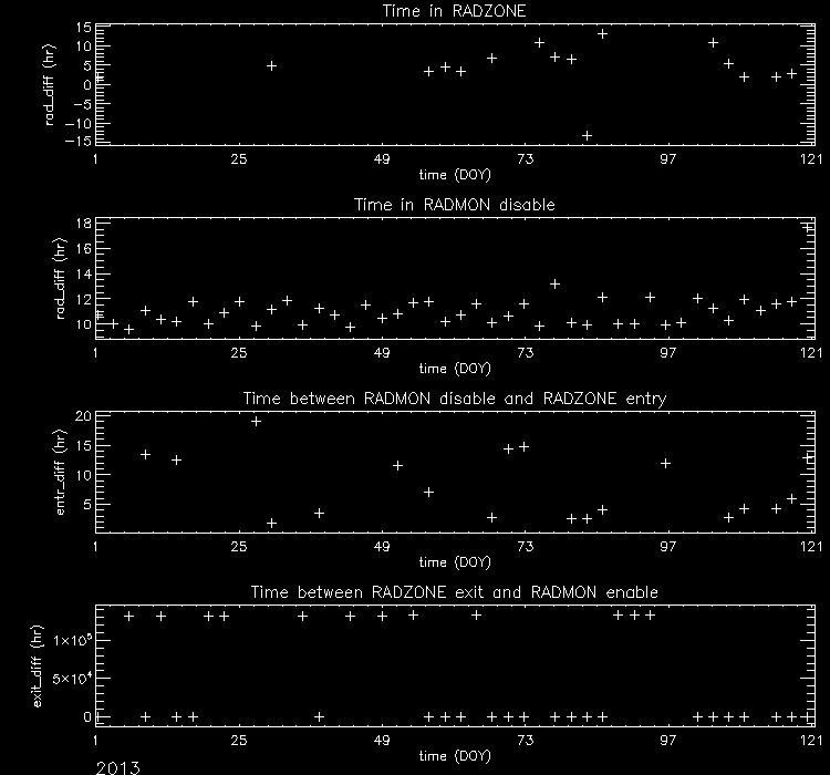 - RADMON - Radmon is disabled for radiation zone (as commanded based on OFLS model, for comparison with actual radiation levels).