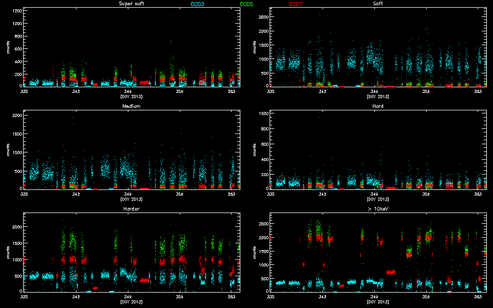 Statistics: # IMAGE NPIX MEAN RMS MIN MAX ACIS_dec13 6004901 5.520 13.265 0.0 12159 I2 node 0 262654 7.190407 3.247010 0.0 49.0 I2 node 1 262654 7.644655 3.636505 0.0 268.0 I2 node 2 262654 7.480930 3.277161 0.0 78.0 I2 node 3 262654 7.535765 6.644500 0.0 2108.0 I3 node 0 262654 7.520477 3.414586 0.0 176.0 I3 node 1 262654 8.318684 9.964360 0.0 3320.0 I3 node 2 262654 7.280967 3.186935 0.0 73.0 I3 node 3 262654 7.312023 16.49264 0.0 7835.0 S2 node 0 262654 6.020244 2.729838 0.0 35.0 S2 node 1 262654 6.045086 3.092440 0.0 48.0 S2 node 2 262654 6.397350 44.99899 0.0 12159.0 S2 node 3 262654 6.027756 2.772659 0.0 312.0 S3 node 0 262654 7.177547 3.064111 0.0 46.0 S3 node 1 262654 7.990430 3.222933 0.0 59.0 S3 node 2 262654 7.756499 4.498073 0.0 1768.0 S3 node 3 262654 7.093441 2.750316 0.0 41.0