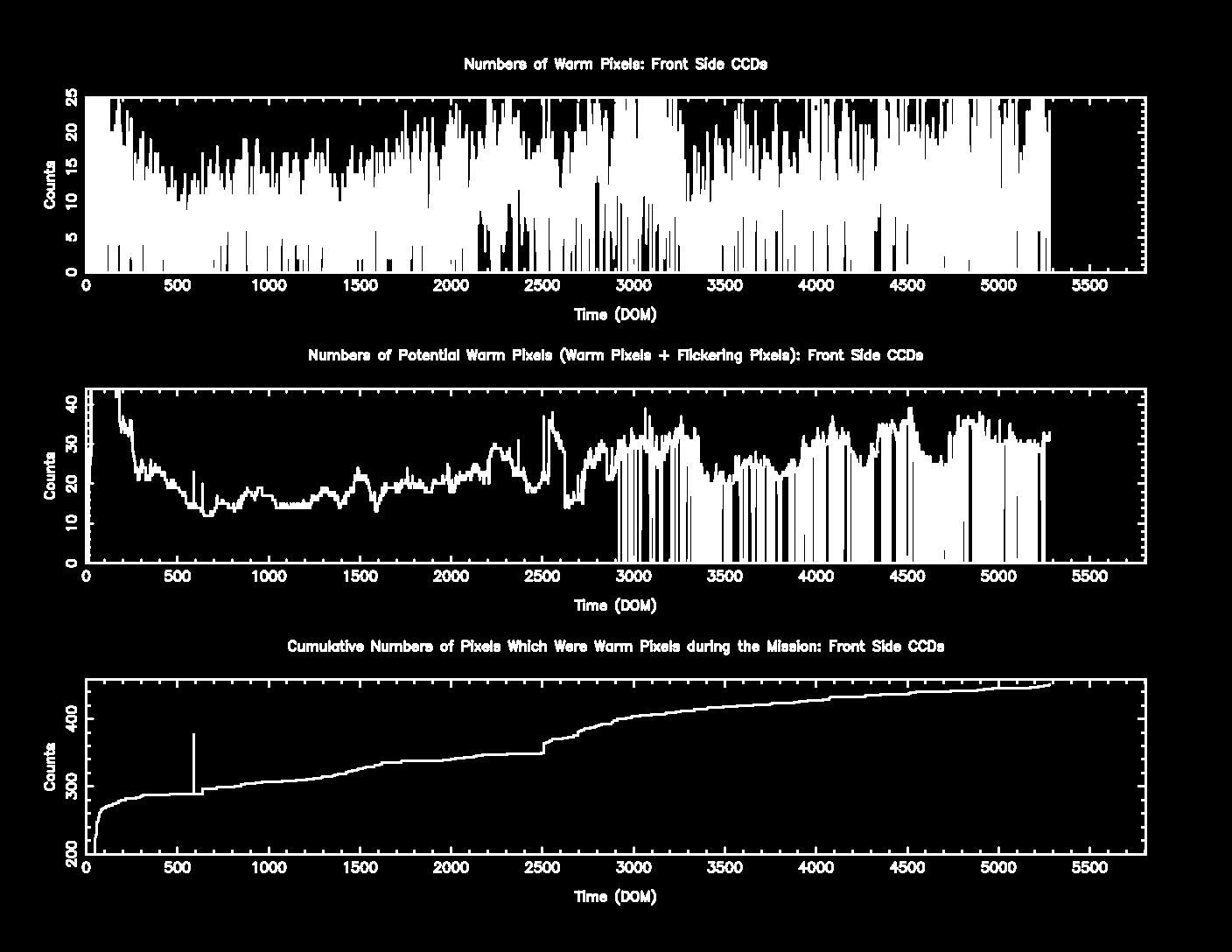 The plots below were generated with a new warm pixel finding script. Please see Acis Bad Pixel Page for details.