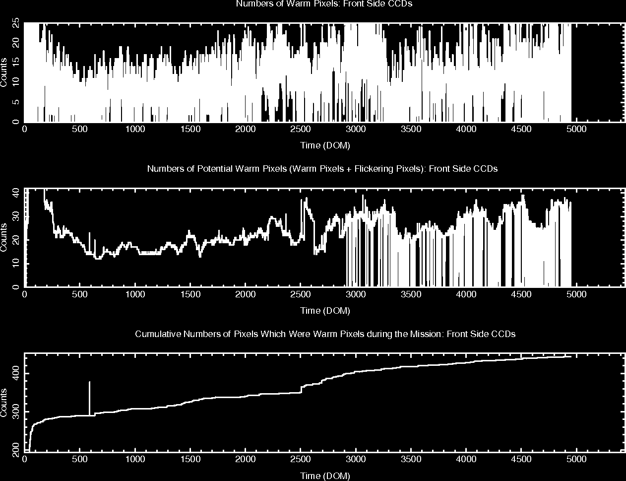 The plots below were generated with a new warm pixel finding script. Please see Acis Bad Pixel Page for details.