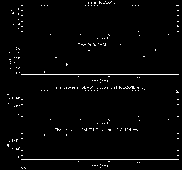 - RADMON - Radmon is disabled for radiation zone (as commanded based on OFLS model, for comparison with actual radiation levels).