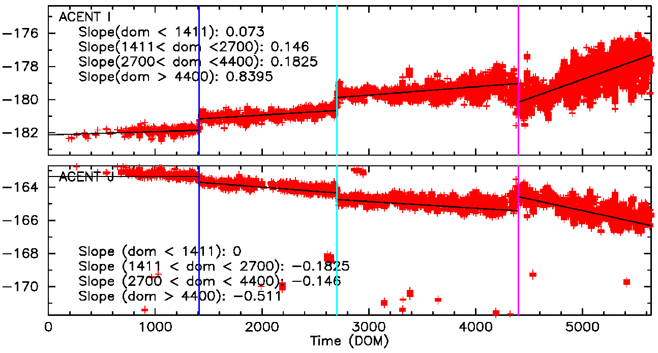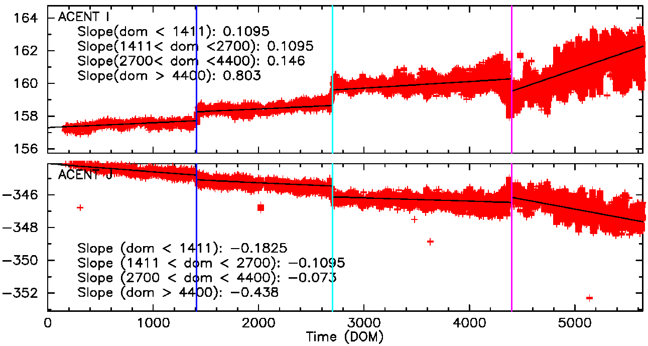 Fid light positions on ACA drift with time. The drift trends of Fid light 2 with ACIS-I and ACIS-S configurations are shown below.