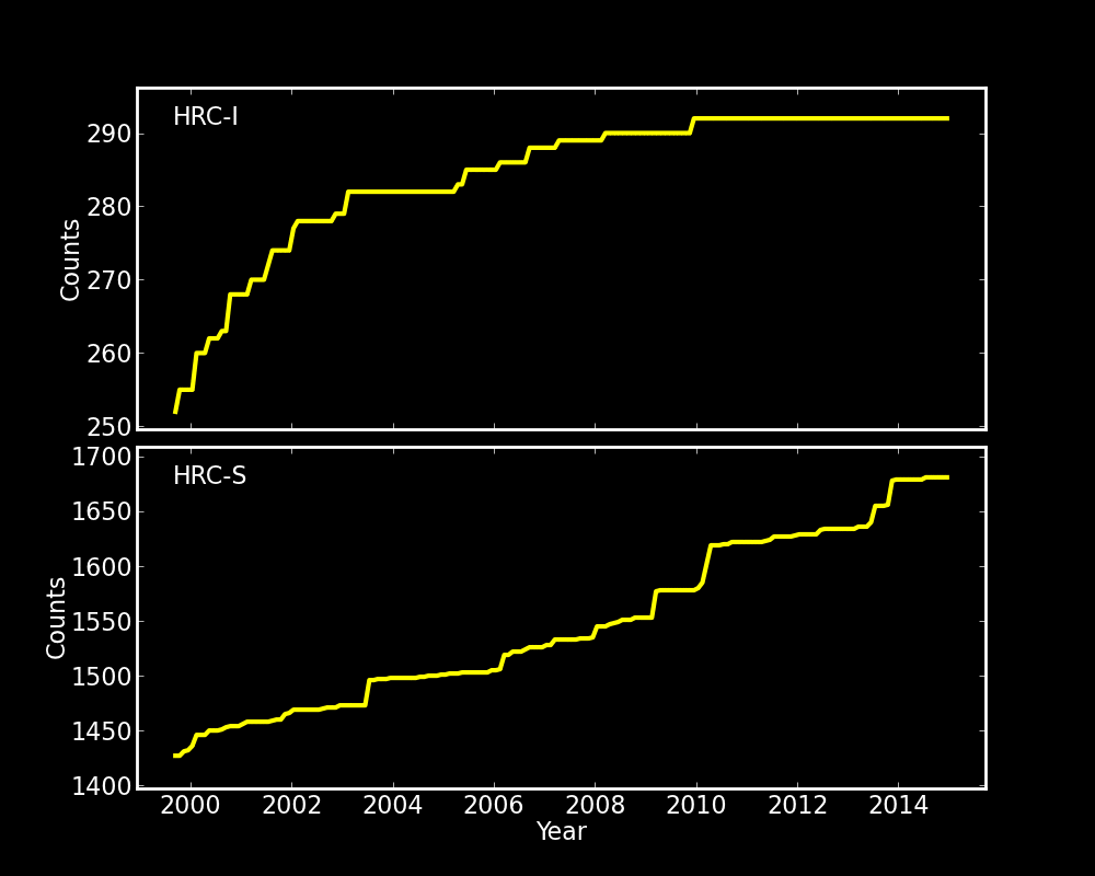 Statistics: # IMAGE NPIX MEAN RMS MIN MAX ACIS_dec14 6004901 6.526 8.959 0.0 2029 I2 node 0 262654 6.650918 3.084143 0.0 34.0 I2 node 1 262654 6.980629 3.374348 0.0 149.0 I2 node 2 262654 6.764765 3.063488 0.0 48.0 I2 node 3 262654 6.855912 6.515018 0.0 2029.0 I3 node 0 262654 7.341841 3.399907 0.0 273.0 I3 node 1 262654 7.529652 6.674622 0.0 146.0 I3 node 2 262654 6.808495 3.019465 0.0 64.0 I3 node 3 262654 7.017077 3.135246 0.0 93.0 S2 node 0 262654 8.160202 3.390117 0.0 80.0 S2 node 1 262654 8.279311 3.820287 0.0 72.0 S2 node 2 262654 8.483360 6.627588 0.0 1500.0 S2 node 3 262654 8.197266 3.512990 0.0 427.0 S3 node 0 262654 11.236837 5.351217 0.0 114.0 S3 node 1 262654 12.740682 4.840870 0.0 94.0 S3 node 2 262654 12.178198 3.998202 0.0 53.0 S3 node 3 262654 11.047378 3.704210 0.0 36.0