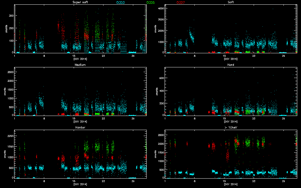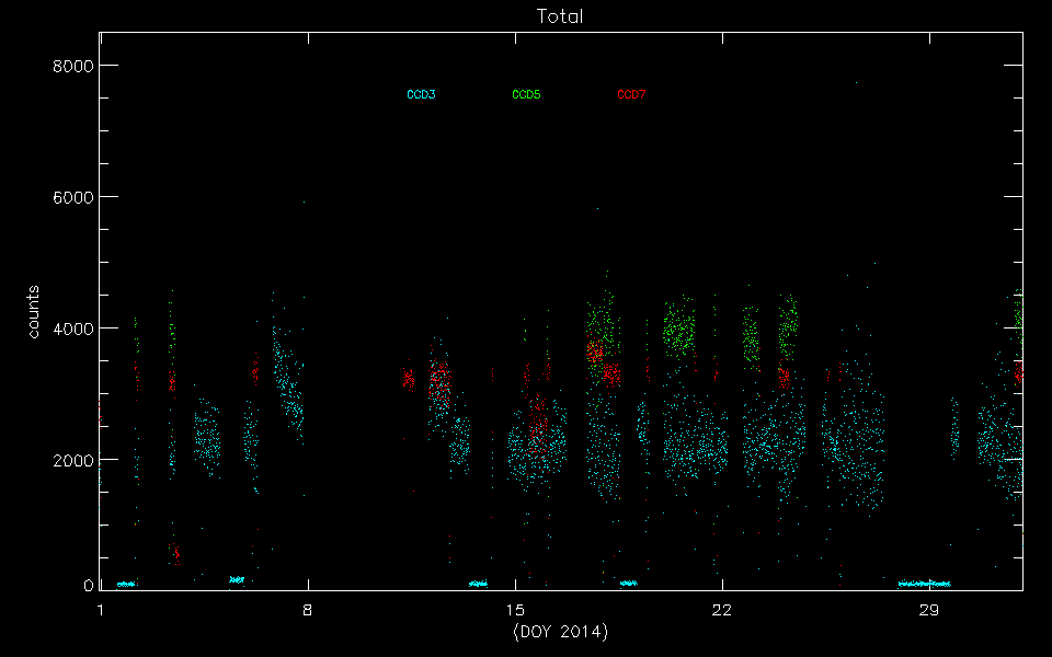 Statistics: # IMAGE NPIX MEAN RMS MIN MAX ACIS_jan14 6004901 8.239 14.732 0.0 663 I2 node 0 262654 11.119968 4.319739 0.0 76.0 I2 node 1 262654 11.576397 4.930068 0.0 358.0 I2 node 2 262654 11.303730 4.183094 0.0 69.0 I2 node 3 262654 11.307726 4.674589 0.0 374.0 I3 node 0 262654 11.362739 4.737994 0.0 79.0 I3 node 1 262654 11.632931 9.826728 0.0 335.0 I3 node 2 262654 10.715933 4.032748 0.0 85.0 I3 node 3 262654 11.100468 4.309757 0.0 209.0 S2 node 0 262654 7.805067 3.308727 0.0 47.0 S2 node 1 262654 7.678128 3.455256 0.0 53.0 S2 node 2 262654 7.752018 3.396836 0.0 56.0 S2 node 3 262654 8.097879 3.451098 0.0 295.0 S3 node 0 262654 18.777639 32.564781 0.0 287.0 S3 node 1 262654 17.542523 25.555297 0.0 263.0 S3 node 2 262654 9.353366 3.327461 0.0 49.0 S3 node 3 262654 8.241441 3.039366 0.0 30.0