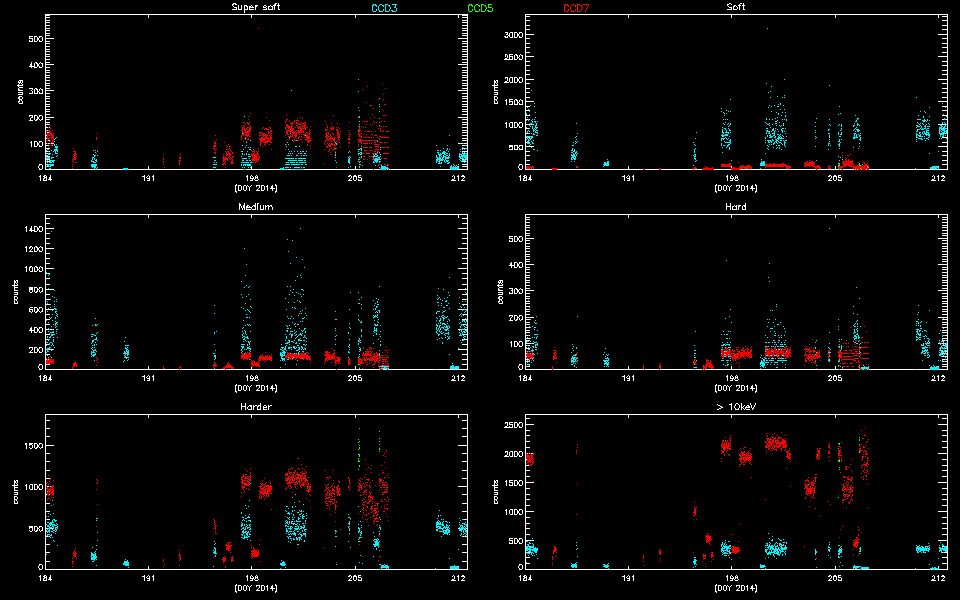 Statistics: # IMAGE NPIX MEAN RMS MIN MAX ACIS_jul14 6004901 7.365 10.129 0.0 387 I2 node 0 262654 7.063169 3.849113 0.0 60.0 I2 node 1 262654 7.313228 3.461977 0.0 133.0 I2 node 2 262654 7.549581 3.415230 0.0 43.0 I2 node 3 262654 7.726792 4.207683 0.0 70.0 I3 node 0 262654 9.990549 4.048693 0.0 40.0 I3 node 1 262654 10.818092 6.731680 0.0 118.0 I3 node 2 262654 8.393377 3.534344 0.0 43.0 I3 node 3 262654 7.549910 3.293415 0.0 75.0 S2 node 0 262654 8.130373 3.872407 0.0 150.0 S2 node 1 262654 8.654855 4.939107 0.0 63.0 S2 node 2 262654 10.031392 8.514377 0.0 94.0 S2 node 3 262654 10.365538 10.697091 0.0 271.0 S3 node 0 262654 13.280970 12.953472 0.0 194.0 S3 node 1 262654 12.979777 9.718509 0.0 141.0 S3 node 2 262654 14.044922 10.806813 0.0 121.0 S3 node 3 262654 12.649728 8.387062 0.0 109.0