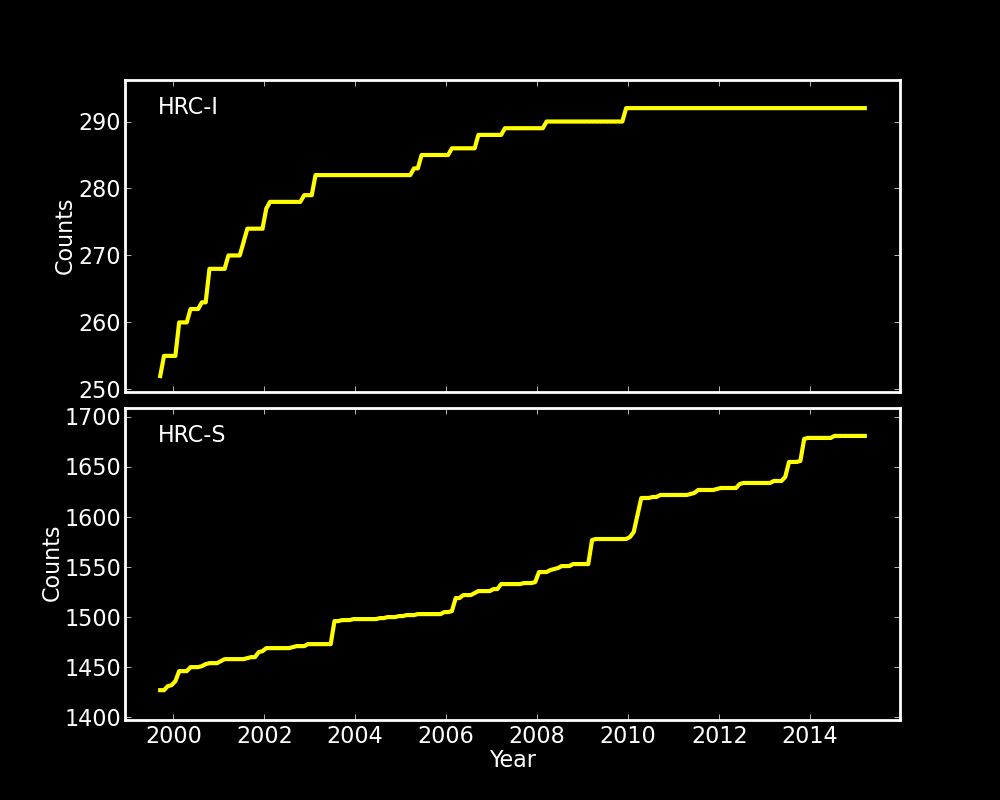 Statistics: # IMAGE NPIX MEAN RMS MIN MAX ACIS_mar15 6004901 8.257 10.756 0.0 2424 I2 node 0 262654 7.238560 3.354597 0.0 62.0 I2 node 1 262654 7.645598 8.660253 0.0 2424.0 I2 node 2 262654 7.293917 3.281557 0.0 67.0 I2 node 3 262654 7.468316 4.805512 0.0 1536.0 I3 node 0 262654 7.730520 3.473802 0.0 64.0 I3 node 1 262654 7.871648 7.409300 0.0 1344.0 I3 node 2 262654 7.341965 3.162909 0.0 76.0 I3 node 3 262654 7.446792 3.340356 0.0 270.0 S2 node 0 262654 9.227719 5.082120 0.0 1819.0 S2 node 1 262654 10.192134 4.100391 0.0 56.0 S2 node 2 262654 14.728439 9.210021 0.0 2252.0 S2 node 3 262654 20.051316 10.060499 0.0 438.0 S3 node 0 262654 14.569133 7.429150 0.0 87.0 S3 node 1 262654 17.718402 7.814063 0.0 97.0 S3 node 2 262654 16.502447 7.354506 0.0 49.0 S3 node 3 262654 11.954046 4.828678 0.0 37.0