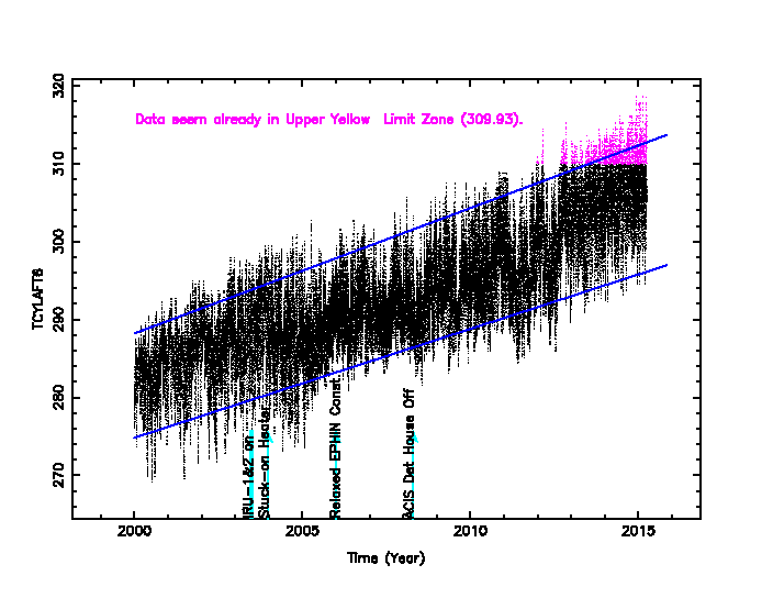 The plots below were generated with a new warm pixel finding script. Please see Acis Bad Pixel Page for details.