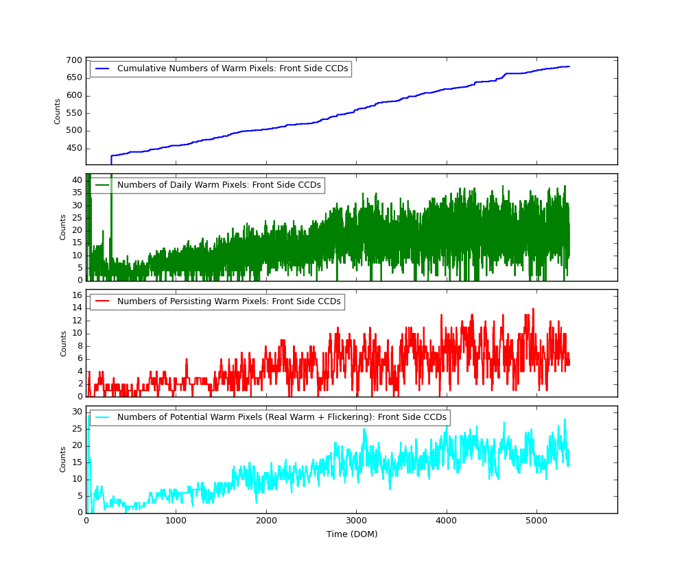 The plots below were generated with a new warm pixel finding script. Please see Acis Bad Pixel Page for details.