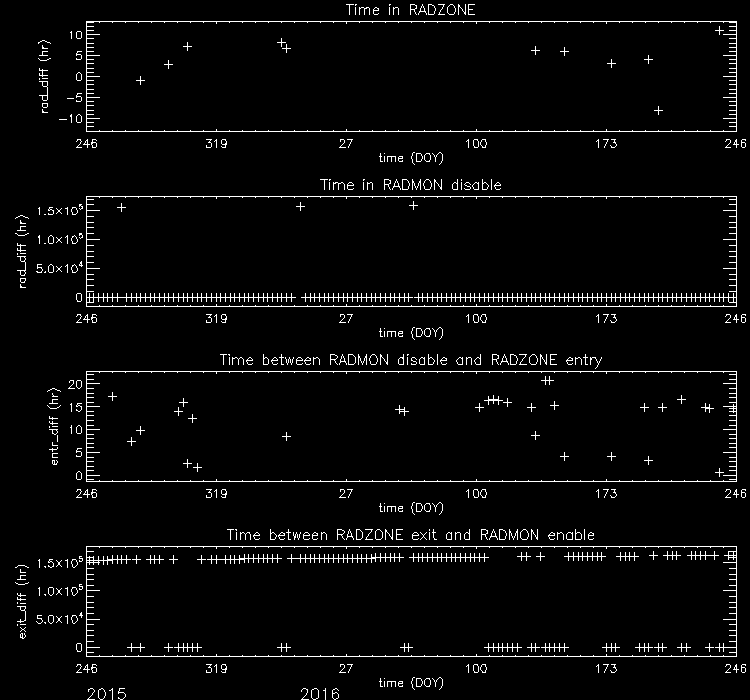 - RADMON - Radmon is disabled for radiation zone (as commanded based on OFLS model, for comparison with actual radiation levels).