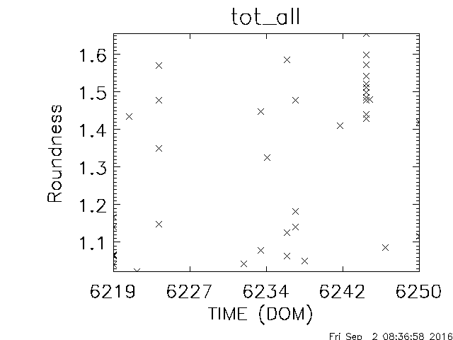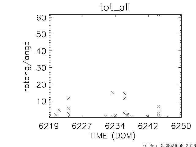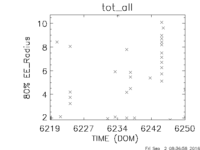 The large dispersion around DOM ~ 2400 (Jan 2005) are all due to none grating Capella observations. Many observations are off-axis observations (e.g., obsid 6558).