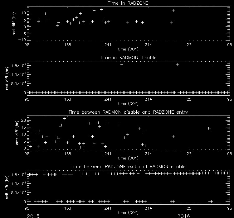 - RADMON - Radmon is disabled for radiation zone (as commanded based on OFLS model, for comparison with actual radiation levels).
