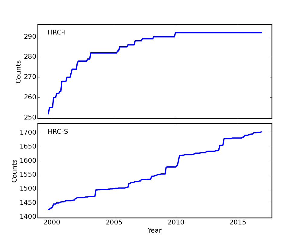 IMAGE NPIX MEAN STDDEV MIN MAX HRCS_08_1999_11_2016.fits 16777216 16.106 28.844 0.000 1703.000
