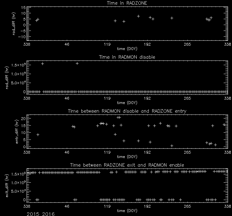 - RADMON - Radmon is disabled for radiation zone (as commanded based on OFLS model, for comparison with actual radiation levels).