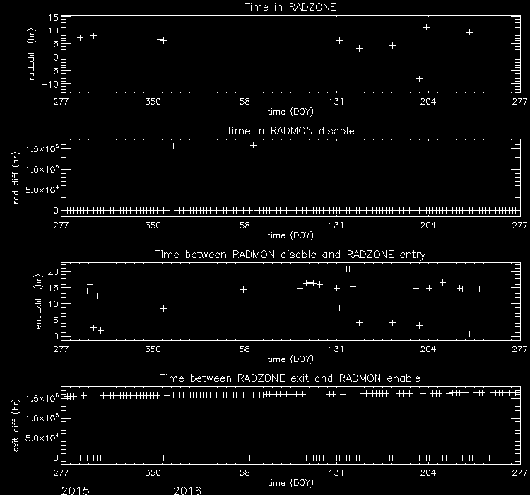 Plotted below are radiation zone timing plots based on the following definitions of radiation zone: