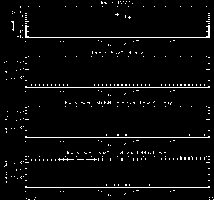 - RADMON - Radmon is disabled for radiation zone (as commanded based on OFLS model, for comparison with actual radiation levels).